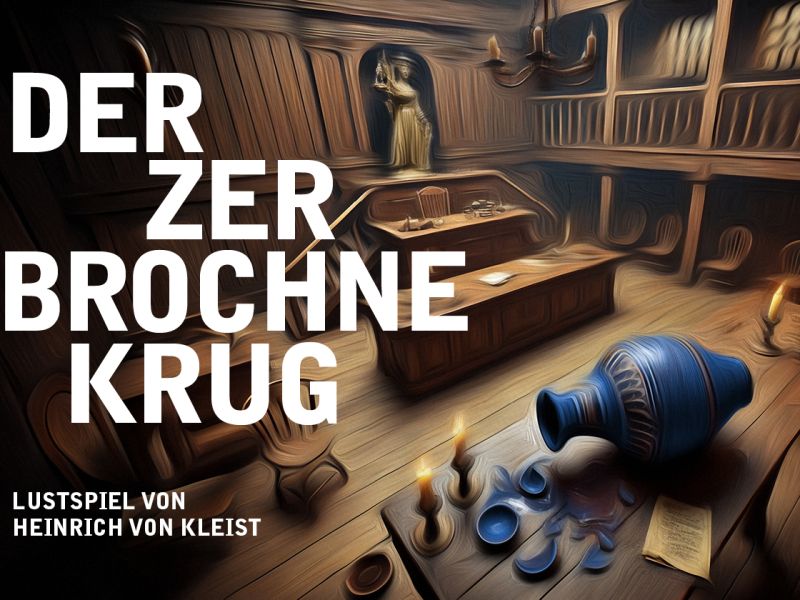 Frau Marthe Rull erhebt Klage. Ein Krug ist ihr zerschlagen worden, der im Zimmer ihrer Tochter Eve stand. Nachts habe sich ein Mann zu Eve geschlichen und, als er aus dem Fenster floh, den Krug zerbrochen. Für Marthe Rull ist der Fall klar: Der Ruprecht war’s, der Verlobte ihrer Tochter, der schon vor der Eheschließung von den süßen Früchten der Liebe kosten wollte. Ruprecht indes ist außer sich vor Zorn, leugnet die Tat und bezichtigt Eve, einen fremden Mann in ihre Kammer gelassen zu haben. Die junge Frau fleht ihren Verlobten an, ihr doch zu vertrauen. Und Marthe Rull zetert und schimpft wie ein Rohrspatz. Eigentlich bräuchte dieses Tohuwabohu eine strenge richterliche Hand. Aber dem Richter Adam ist die Verhandlung sichtlich unangenehm. Er stellt merkwürdige Fragen, zieht absurde Schlussfolgerungen. Gerichtsrat Walter kann sich des Eindrucks nicht erwehren, dass dieser Adam mehr daran interessiert ist, die Dinge zu verschleiern als hinter das Geheimnis des zerbrochnen Kruges zu kommen. Wie es dann schlussendlich doch enthüllt wird, ist ein irrwitziges Spektakel.