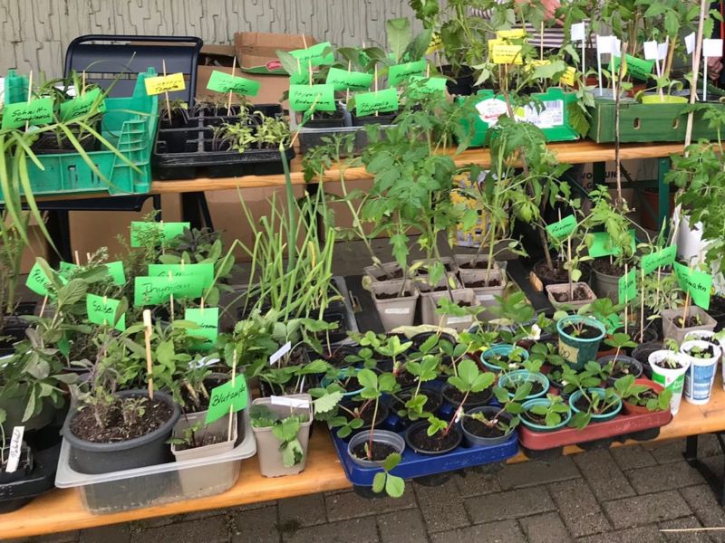 Für zu groß gewordene Pflanzen wird es wieder eine Stellwand geben, wo man ein Foto der Pflanze mit seinen Kontaktdaten hängen kann – für Selbstabholer. Und eine weitere Tafel wird aufgestellt, wo es zwei Spalten für 'Suche' und 'Biete' geben wird: z.B. für "Hilfe bei der Gartenpflege – gegen Fläche zum Bearbeiten".