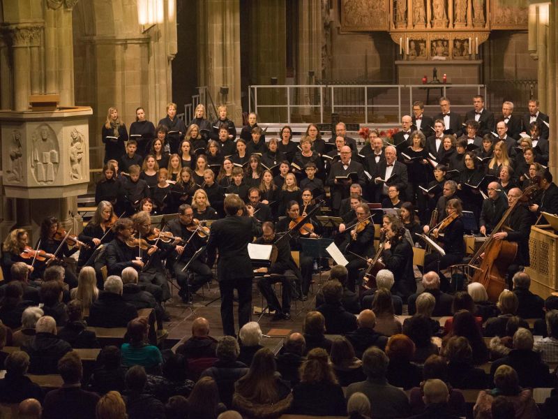 Es erklingen die Kantaten I, III und V und das Schlußchoral der 6. Kantate durch den Bach-Chor, das Vokalensemble Heilbronn, den Karlsruher Barockorchester und Judith Wiesebrock (Sopran), Hanna Roos (Alt) sowie Lukas Siebert (Tenor) u.a.; Leitung: Stefan Skobowsky.