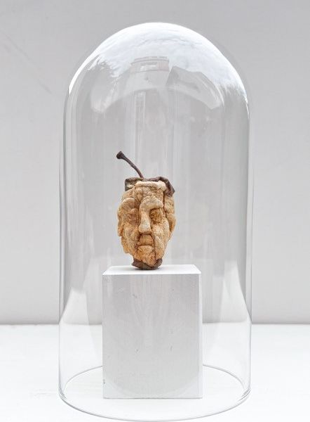 Spielerisch setzt die Künstlerin ihre Stillleben in Bewegung, präsentiert eine gedeckte Tafel als Suchspiel und Sinnbild. Sie erhebt Essensreste zu Portraits und stellt aus Apfelbutzen eine Ahnengalerie zusammen. Pflanzen die in der Küche Verwendung finden und einen behutsamen Umgang verlangen, finden sich in einem fragilen Gebilde aus gebranntem Ton wieder. Schalen und Brotreste bekommen ein neues Dasein– Spuren des Alltäglichen, die sich verwandeln.