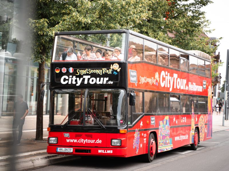 Entdecken Sie Heilbronn auf die schönste Art und Weise. Mit dem Citytour-Cabrio-Bus! 50 Highlights in nur 100 Minuten – keine andere Stadtführung bietet Ihnen so viel in so kurzer Zeit. Innenstadt, Neckarmeile, Trappensee, Wartberg, Botanischer Obstgarten und vieles mehr, sind im roten Cabrio-Bus bequem in einer Tour zu besichtigen. An insgesamt zwölf Stationen gibt es die Möglichkeit auszusteigen und die Gegend individuell zu entdecken, um dann bei der nächsten Fahrt wieder an Bord zu „hüpfen“. Die Tickets sind 24 Stunden gültig.