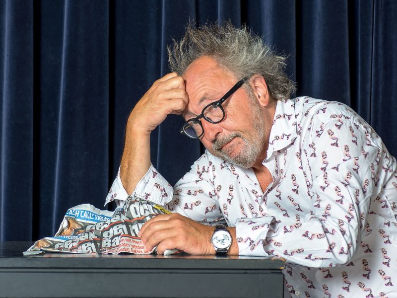 Die Ansprüche ans Publikum sind bei diesem Programm nicht gering: auch wenn er sich den einen oder anderen Kalauer erlaubt („Ich spiele nicht fürs Föjetong!“), schadet es nicht, politisch auf dem Laufenden zu sein, um sich die oftmals subtilen Anspielungen des Spötters nicht entgehen zu lassen. Aber auch der Kabarettist selbst, der vor grandiosen Einfällen und Pointen fast übersprudelt und auch zu aktuellen Themen stets etwas zu sagen hat, steht vor einer gewaltigen Aufgabe: So sieht sich der agile Wirbelwind in einem steten Wettlauf mit der Zeit, die ihm mit einem einzigen Abend doch arg eng bemessen vorkommt. Ein Jahr in einem Abend, ja, zefix!