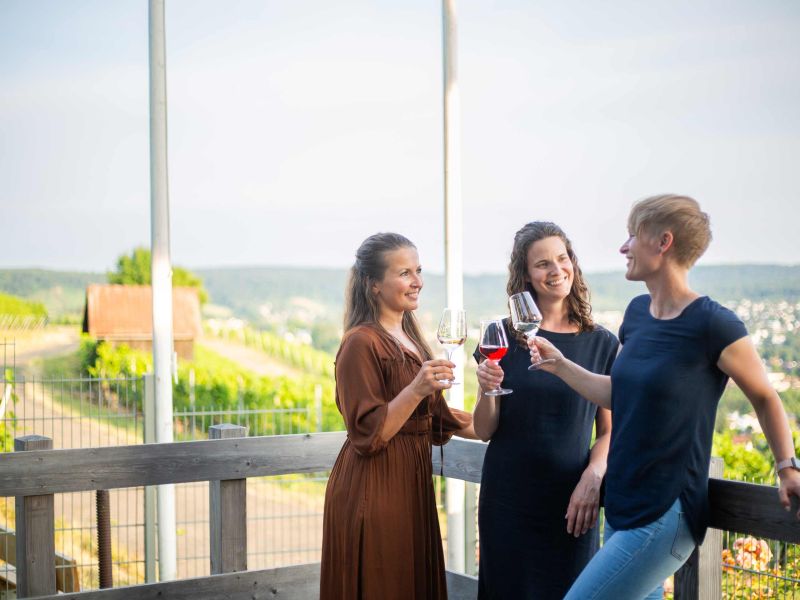 Die Betriebe der WeinVilla schenken im Wechsel aus. Mit einer Wurst im Brötchen bieten die Wengerter ganz in der Tradition eines „Vespers am Wengert-Häusle“ auch eine Kleinigkeit zu essen an. Bei Sonnenuntergang hier mit Blick auf die Stadt sitzen und ein Glas mitten in der Weinlandschaft genießen, das ist doch wie ein kleines Paradies!